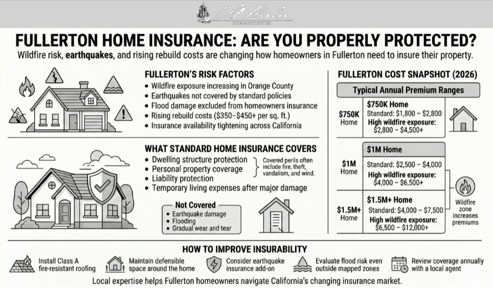 Fullerton’s Local Hazard Mitigation Plan identifies earthquakes, wildfires, and severe weather as significant property threats. Understanding these local risks explains why certain coverage types matter more for Fullerton homeowners than residents in other regions.